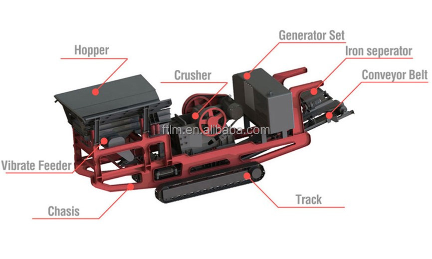 1.Track-Mounted Mobile Jaw Crusher: Generally used for primary crushing of large, hard materials.